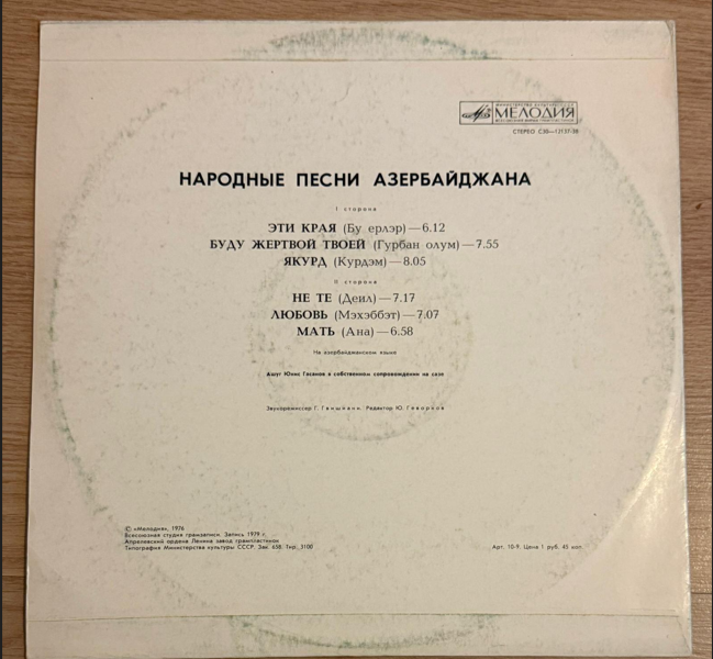 Sovyetler Birliği’nin efsane plak firması Melodiya tarafından basılmış, Azerbaycan halk müziği eserlerinden oluşan bir derleme (compilation) LP’dir.