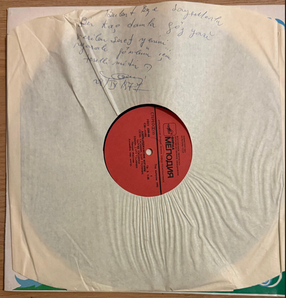 Plak kapağında yer alan nostaljik el yazısı not, ürünün yaşanmışlığını ve dönem ruhunu yansıtan eşsiz bir koleksiyon detayıdır.