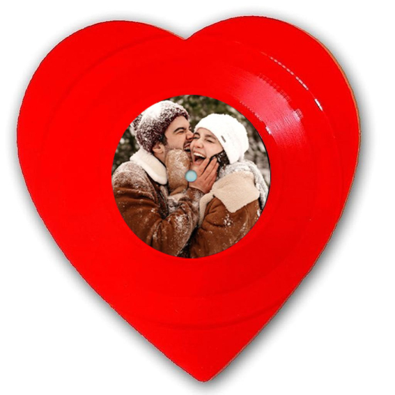 Kalp şeklinde kırmızı plak, özel günler için hem dekoratif hem de müzik dinlenebilen benzersiz bir üründür.