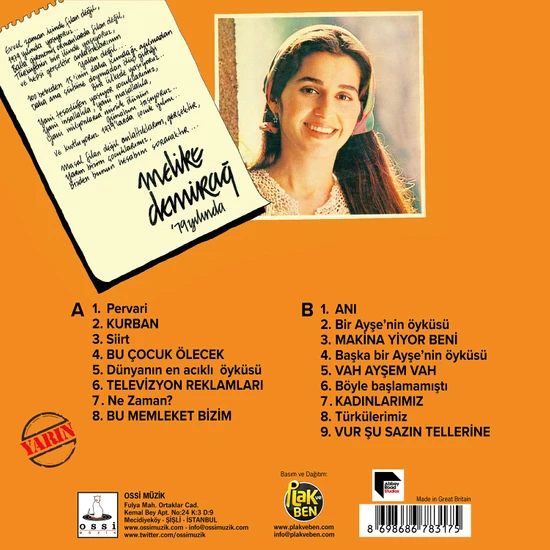 MELİKE DEMİRAĞ 79 YILINDA isimli bu albüm Malumu İlam eden bir içeriğe sahip. Herkes tarafından bilinen fakat bilinmiyormuş gibi davranılan, görmezden gelinen malumun açıkça ve cesurca ilamı…