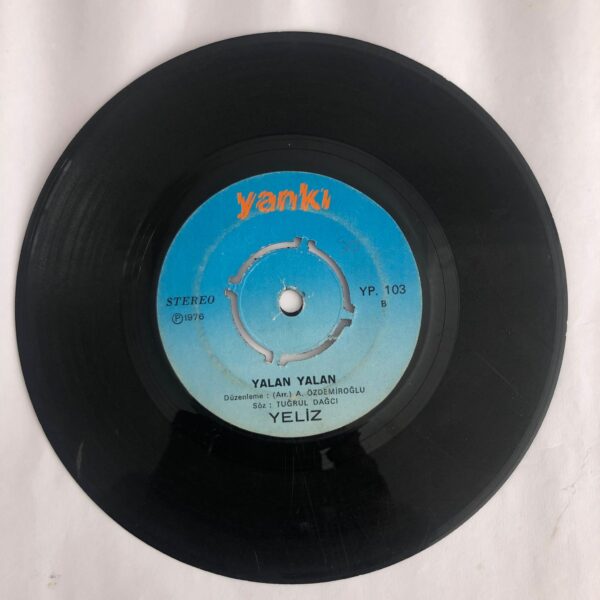Etiketler: 45'lik Plak, 7" Plaklar, Dönem Baskı Yerli 45'lik Plak, Müzik Türüne Göre Plaklar, Plak, Plak Firmaları, Plak Sanatçıları, Pop Müzik Plağı, Yankı Plak, Yeliz Plak